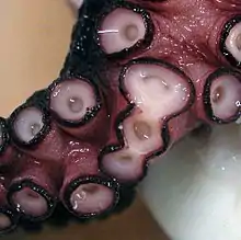 A deformed sucker cluster on an arm of an أخطبوطيات
