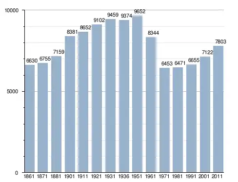 في سنة 1861 بلغ عدد السكان 6٬630 نسمة، وتطور العدد ليصل في سنة 2011 لـ 7٬803 نسمة.