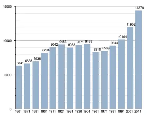 في سنة 1861 بلغ عدد السكان 6٬341 نسمة، وتطور العدد ليصل في سنة 2011 لـ 14٬379 نسمة.