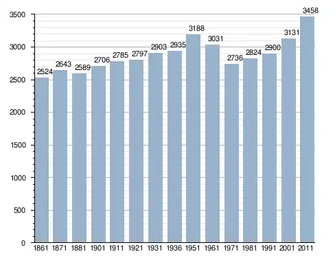 في سنة 1861 بلغ عدد السكان 2٬524 نسمة، وتطور العدد ليصل في سنة 2011 لـ 3٬458 نسمة.