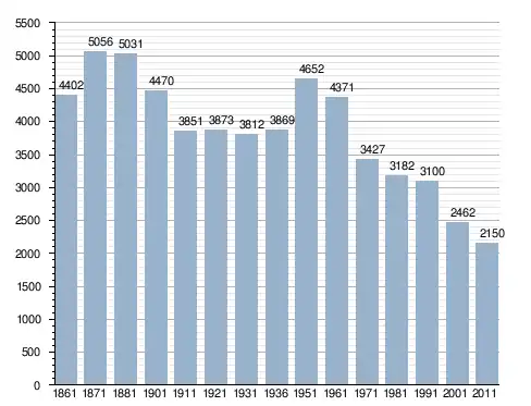 في سنة 1861 بلغ عدد السكان 4٬402 نسمة، وتطور العدد ليصل في سنة 2011 لـ 2٬150 نسمة.