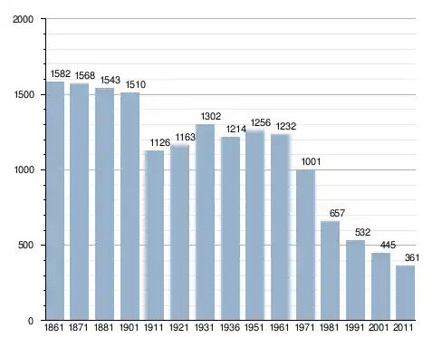 في سنة 1861 بلغ عدد السكان 1٬582 نسمة، وتطور العدد ليصل في سنة 2011 لـ 361 نسمة.