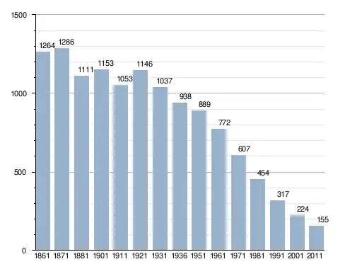 في سنة 1861 بلغ عدد السكان 1٬264 نسمة، وتطور العدد ليصل في سنة 2011 لـ 155 نسمة.