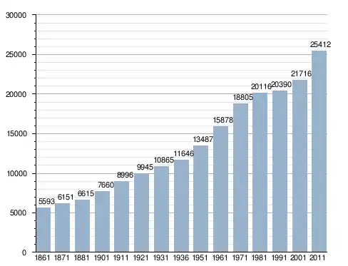 في سنة 1861 بلغ عدد السكان 5٬593 نسمة، وتطور العدد ليصل في سنة 2011 لـ 25٬412 نسمة.