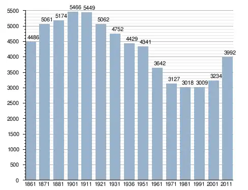 في سنة 1861 بلغ عدد السكان 4٬486 نسمة، وتطور العدد ليصل في سنة 2011 لـ 3٬992 نسمة.