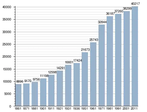 في سنة 1861 بلغ عدد السكان 8٬896 نسمة، وتطور العدد ليصل في سنة 2011 لـ 40٬217 نسمة.