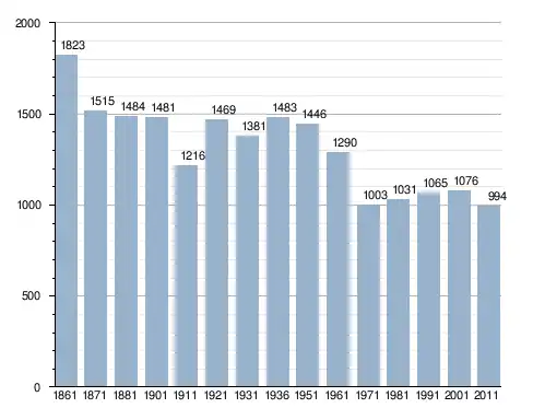 في سنة 1861 بلغ عدد السكان 1٬823 نسمة، وتطور العدد ليصل في سنة 2011 لـ 994 نسمة.