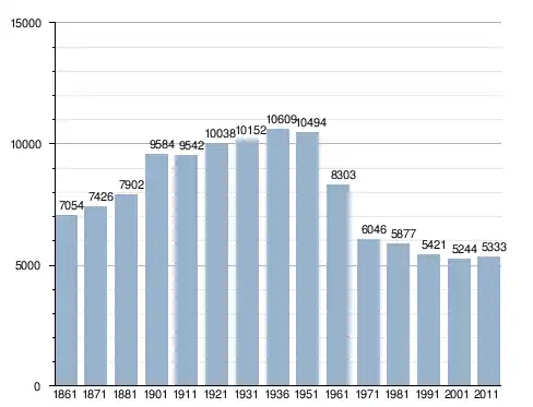 في سنة 1861 بلغ عدد السكان 7٬054 نسمة، وتطور العدد ليصل في سنة 2011 لـ 5٬333 نسمة.