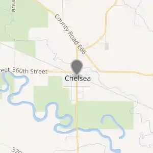 - "صفحة تشيلسي (آيوا) في GeoNames ID". GeoNames ID. اطلع عليه بتاريخ 6 مارس 2021. الوسيط