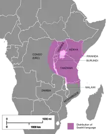 كما وجد أتشيبي في رحلاته أن اللغة السواحلية تتكسب المزيد من التمييز لتكون لغة أفريقية هامة. إذ كان بث قنوات الراديو بالغة السواحلية، كما كان يتم استخدامها بشكل واسع في الدول التي زارها. رغم ذلك، وجد أتشيبي حالة من "عدم الاهتمام" من الناس تجاه الأدب المكتوب بالسواحلية.[72] كما قابل الشاعر الشيخ شعبان روبرت، والذي اشتكى من الصعوبات التي واجهها عند نشر أعماله باللغة السواحلية.[73]