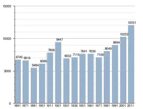 في سنة 1861 بلغ عدد السكان 6٬740 نسمة، وتطور العدد ليصل في سنة 2011 لـ 12٬031 نسمة.