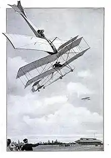 ...the Antoinette monoplane crashed on to the biplane, both machines falling to earth a mass of broken planes and tangled wires.