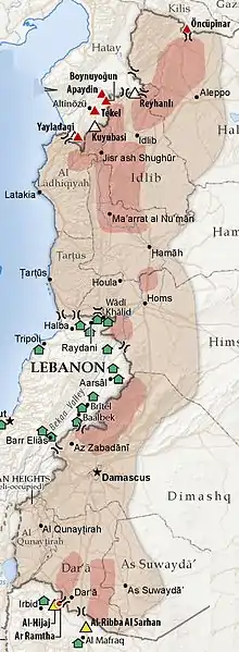 |CitationClass=تم تجاهله (مساعدة) - "Lebanon border area mired in Syrian conflict". Global Post. 21 April 2013. مؤرشف من الأصل في 10 مايو 2013. الوسيط