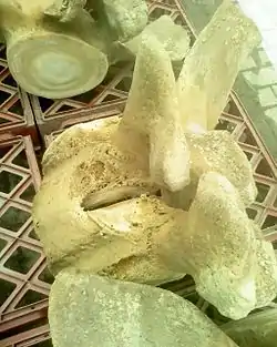 ![]() قسط عظمي (تصلب المفصل والتصاقه) حيث يظهر التحام فقرتين في هذه العينة المأخوذة من حوت شمال الأطلسي الصائب قسط عظمي (تصلب المفصل والتصاقه) حيث يظهر التحام فقرتين في هذه العينة المأخوذة من حوت شمال الأطلسي الصائب | |