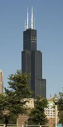ثم تم استخدامه بعد فترة وجيزة لمركز جون هانكوك وفي بناء مركز التجارة العالمي .