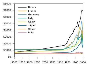 - بيانيات مُستخرجة من Contours of the World Economy، 1–2030 AD. Essays in Macro-Economic History تأليف Angus Maddison، Oxford University Press، 2007، ISBN 978-0-19-922721-1, ص. 382، جدول A.7.