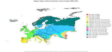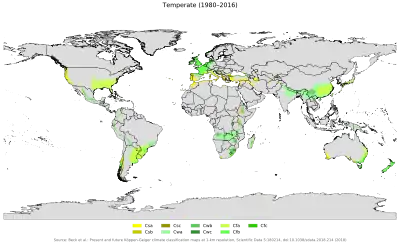 |CitationClass=تم تجاهله (مساعدة) - Beck, Hylke E.; Zimmermann, Niklaus E.; McVicar, Tim R.; Vergopolan, Noemi; Berg, Alexis; Wood, Eric F. (30 October 2018). "Present and future Köppen-Geiger climate classification maps at 1-km resolution". Scientific Data (باللغة الإنجليزية). 5: 180214. Bibcode:2018NatSD...580214B. doi:10.1038/sdata.2018.214. ISSN 2052-4463. PMID 30375988. الوسيط