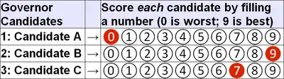 الوسيط|CitationClass=تم تجاهله (مساعدة) - "Score Voting". The Center for Election Science. 2015-05-21. مؤرشف من الأصل في 25 يناير 2019. اطلع عليه بتاريخ 11 ديسمبر 2016. الوسيط