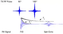 - بعد تأثير البروتونات بموجات الراديو يتم بث الموجات مره أخرى فتعود 180°، وتقاس المدة الزمنية بين التأثير الأول 90° والتأثير الثاني 180° بتوقيت الصدى.