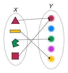 أحد أنواع التطبيقات هو دالة، كما هو الحال في رفق أي من الأشكال الأربعة الملونة في X بلونها في Y