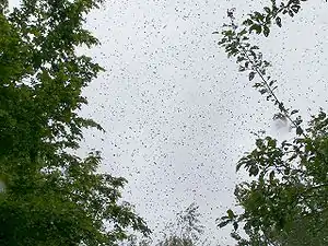 - طرد التلقيح: يكون طرد التلقيح على رأسه ملكة عذراء وأحياناً أكثر من ملكة وترافق هذة الملكة عدة آلاف من الشغالات مع عدة مئات من الذكور وحيث يتم التلقيح تعود إلي خليتها برفقة الشغالات المرافقات لها[4]
