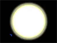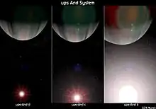 ![]() تصور فني للنجم إبسلون اندروميدا يظهر هنا 2 من 4 الكواكب المعروفة. | |