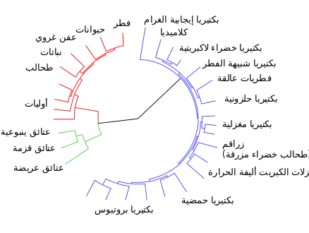 |CitationClass=تم تجاهله (مساعدة)CS1 maint: ref=harv (link) - Ciccarelli FD, Doerks T, von Mering C, Creevey CJ, Snel B, Bork P (2006). "Toward automatic reconstruction of a highly resolved tree of life". Science. 311 (5765): 1283–87. Bibcode:2006Sci...311.1283C. doi:10.1126/science.1123061. PMID 16513982. الوسيط