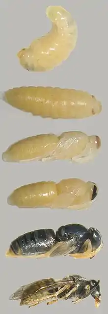 البيضة تفقس منها يرقة لا تشبه اليافعة، وقد تكون أشبه بالديدان،