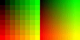 القيمة المقروءة من المصفوفة يجب أن تتدرج من نفس النطاق، كما هو أدنى فرق بين الألوان المختلفة في اللوحة المستهدفة.