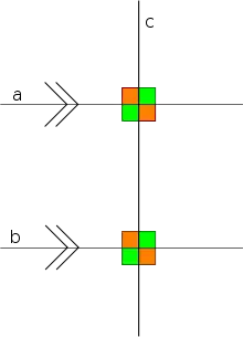 - الخط المستقيم c عمودي على الخط المستقيم a