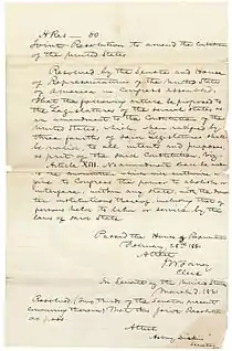 |CitationClass=تم تجاهله (مساعدة) - Bryant, A Christopher (April 1, 2003). "Stopping time: The pro-slavery and "irrevocable" Thirteenth Amendment". Allbusiness.com. مؤرشف من الأصل في 10 ديسمبر 2008. الوسيط
