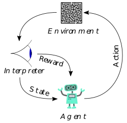 يتفاعل وكيل التعليم المعزز مع بيئته في خطوات زمنية منفصلة. في كل زمن t، يتلقى الوكيل رصدًا عادة ما يشمل مكافأة . ثم يختار الوكيل إجراءًا من مجموعة الإجراءات المتاحة، والذي يتم إرساله إلى البيئة. تنتقل البيئة بعد ذلك إلى حالة جديدة ويتم التحديد المكافأة المرتبطة بالانتقال . هدف الوكيل في التعليم المعزز هو جمع أكبر قدر من المكافأة. بإمكان الوكيل اختيار إجرائه كدالة لتاريخه أو حتى بطريقة عشوائية.