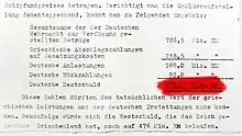 الوسيط|CitationClass=تم تجاهله (مساعدة) - "Greece Nazi occupation: Athens asks Germany for 279bn euros". BBC News. 7 April 2015. مؤرشف من الأصل في 20 يونيو 2019. اطلع عليه بتاريخ 07 أبريل 2015. الوسيط