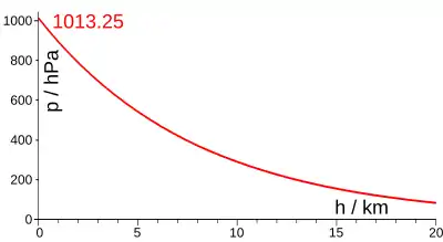 فكل زيادة للارتفاع بمقدار يقل الضغط الجوي بمقدار . لهذا يعتبر مدرّج الارتفاع مقياس طبيعي للضغط الجوي وتغيره. وهو يبلغ في مثالنا الحالى عند درجة حرارة 15 مئوية 8.4 كيلومتر.