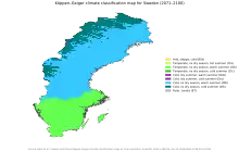 منذ بداية العصر الرباعي قبل 2.5 مليون سنة تقريبًا، تناوب مناخ السويد بين فترات جليدية وفترات بين جليدية (بين جليديين). استمرت الفترات الجليدية لمدة تصل إلى 100,000 عام مع درجات حرارة أقل بنحو 20 درجة مئوية من الأيام الحالية، وأدى انخفاض درجات الحرارة إلى تشكل الغطاء الجليدي الذي غطّى معظم السويد أو كاملها. كانت الفترات بين الجليديين أقصر، إذ استمرت من 10,000 عام إلى 15,000 عام. كان المناخ خلال هذه الفترات مشابهًا لمناخ اليوم مع وجود غابات واسعة وفصول صيف خالية من الجليد. كان تجمد فايسلي آخر هذه الفترات الجليدية واستمر من عام 115,000 قبل الميلاد وحتى عام 11,500 قبل الميلاد تقريبًا. في ذروته بين عامي 20,000–17,000 قبل الميلاد، امتد إلى الأجزاء الشمالية لكل من ألمانيا وبولندا. تميز الانتقال إلى الفترة بين الجليدية الحالية بتراجع صفائح الجليد وارتفاع تدريجي بدرجات الحرارة. بحلول فترة 7,000–6,000 قبل الميلاد، كانت درجة الحرارة أكثر دفئًا بنسبة قليلة عن اليوم ما أدى إلى تغطية الغابات النفضية النصفَ الجنوبي للبلاد. تقلبت درجات الحرارة منذ ذلك الحين مع وجود اتجاه تبريد ضعيف أدى بدوره إلى زيادة نسبية لغطاء الأشجار الصنوبرية.