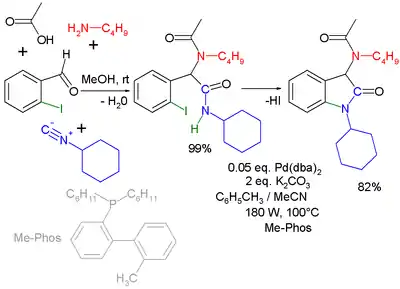 - Rapid Access to Oxindoles by the Combined Use of an Ugi Four-Component Reaction and a Microwave-Assisted Intramolecular Buchwald-Hartwig Amidation Reaction Florence Bonnaterre, Michèle Bois-Choussy, and Jieping Zhu Org. نسخة محفوظة 19 أبريل 2019 على موقع واي باك مشين.