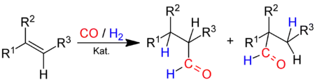 - ("إيزو") H2 + CO + CH3CH=CH2 → (CH3)2CHCHO