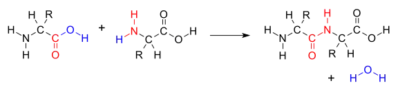 عند حدوث تفاعل التكاثف بين جزيئتين منفصلتين (وحدتين منفصلتين) فإن هذا التفاعل يوصف بأنه بين جزيئي. كمثال على ذلك، تفاعل التكاثف بين حمضين أمينيين عند تشكيل الرابطة الببتيدية المميزة للبروتينات.