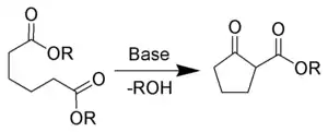 أما عند حدوث تفاعل التكاثف بين مجموعتين وظيفيتين داخل الجزيء نفسه فإن هذا التفاعل يوصف بأنه تفاعل تكاثف داخل الجزيء، والذي غالباً ما يقود إلى تشكل مركب حلقي. كمثال على ذلك، تفاعل تكاثف ديكمان، حيث تتفاعل مجموعتا إستر في الجزيء نفسه للحصول على ناتج من β-كيتوإستر مع فقدان جزيء كحول موافق.
