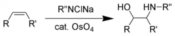 شاربلس اوكسي امينيشن هو تفاعل كيميائي للألكان مع جزيئات الألكيل إيميدو أوزميوم لتكون تجاور الكحولي-اميني.[1][2][3] مراجعة مفصلة تمت من قبل McLeod et al. في 2002.[4]