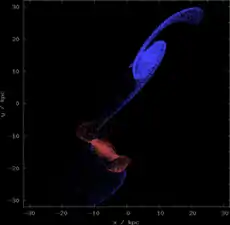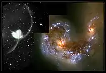 وتشكل المجرتان عضوا في تجمع مجرات الهلبة ويبدو أن المجرتان قد بدأتا الاصتدام، وسوف تستمران في تداخلهما حتى تندمجان مع بعضهما مكونتان مجرة أكبر.