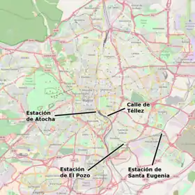 خلال ساعات الذروة في مدريد صباح الخميس 11 مارس 2004، وقعت عشرة انفجارات على متن أربعة قطارات للركاب (سركانيياس - cercanías).[24] أدى هذا التاريخ إلى الاختصار الشائع للحادث وهو «إم 11». كانت جميع القطارات المتضررة تسير على نفس الخط وفي نفس الاتجاه بين ألكالا دي إيناريس ومحطة مترو أتوشا في مدريد. وأفادت التقارير في وقت لاحق عن وجود 13 عبوة ناسفة في القطارات. تخلصت الفرق المختصة في تفكيك المتفجرات والتي وصلت إلى مواقع التفجيرات، اثنتين من العبوات الناسفة الثلاث المتبقية في تفجيرات محكومة، لكن تعثر على الثالثة حتى وقت متأخر من المساء، إذ خُزنت عن غير قصد مع الأمتعة المأخوذة من أحد القطارات. أقر التحقيق القضائي التسلسل الزمني التالي للأحداث.[25]
