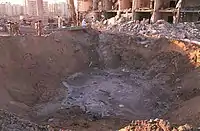 الحفرة التي خلفها انفجار الشاحنة المفخخة