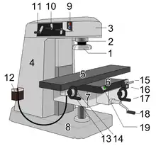 [الإنجليزية] · ظرف [الإنجليزية] · ظرف زناقي [الإنجليزية] · دليل تشغيل [الإنجليزية] · مثبتة [الإنجليزية] · رأس تقسيم [الإنجليزية] · ذنبة المخرطة [الإنجليزية] · محور تثبيت عدة القطع؟ [الإنجليزية] · قاعدة مغناطيسية [الإنجليزية] · ممسك المشغولة · طاولة دورانية [الإنجليزية] · موجد المركز أو الحواف [الإنجليزية] |