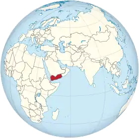 ![]() خريطة العالم توضح موقع دولة اليمن باللون الأحمر. | ||||