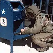 يوجد عدة بدلات مصممة من أجل الحماية أثناء تفكيك القنابل مثل بدلة MK1 التي صنعت في عام 1969 وبدلة MK2 وصنعت في عام 1974 ومزيد من التطويرات لنصل إلى MK3 في عام 1980 والتي أدخلت خوذة جديدة. أدخلت بدلة MK4 في الخدمة في عام 1993، وتجمع بين الحماية من الشظايا وانفجار القنبلة في أجزاء الجسم الأساسية مثل الرأس والجذع والوجه. لاتحظى اليدين بأي حماية في جميع البدلات.[8]