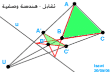 في الهندسة الوصفية التقابل بين شكلين هندسيين delta و'delta (صورة-2) هو رابط إسقاطي، بحيث أن: