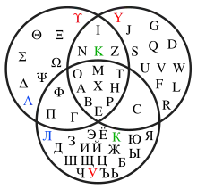 تقاطع الحروف اليونانية واللاتينية والروسية (بشكلها الكبير)