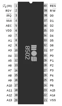 الدبابيت الخارجية (pinout) مختلف قليلا عن 6510. 8502 يحتوي على دبابيس مدخلات/مخرجات (منفذ المدخلات/نخرجات المدمجة مخطط للعنوان 0 و1 تم تمديدها 6 حتى 7 بت) ويفتقر إلى ϕ2-دبوس والتي يحتوي عليها 6510.