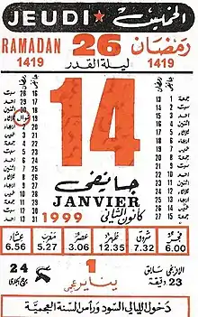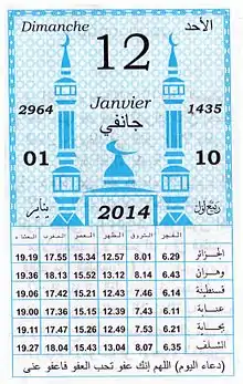 التقويم الأمازيغي أو التقويم الفلاحي أو التقويم العجمي هو تقويم زراعي قليل ما يستعمل في دول شمال أفريقيا. يعرف أيضًا بـ التقويم الفلاحي (أي الريفي) نظرا لارتباطه الوثيق مع الفلاحة والزراعة في شمال إفريقيا أي من أجل تنظيم الأعمال الزراعية الموسمية.[1] أصله حسب الرويات التاريخية يرجع لبقايا التواجد الروماني[وفقاً لِمَن؟]